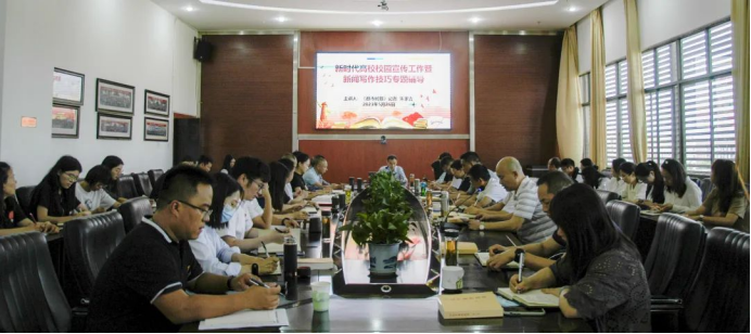 为深入学习贯彻习近平新时代中国特色社会主义思想主题教育,进一步增强广大干部宣传意识,建立健全宣传网络,形成人人都是宣传员的宣传格局,不断提升学校的知名度、美誉度,扩大宣传影响力。5月26日,学校邀请昆明报业传媒集团·都市时报新闻主编、《滇池·创意昆明》杂志主编朱家吉开展了《新时代高校校园新闻宣传写作基础知识与技巧》专题培训。